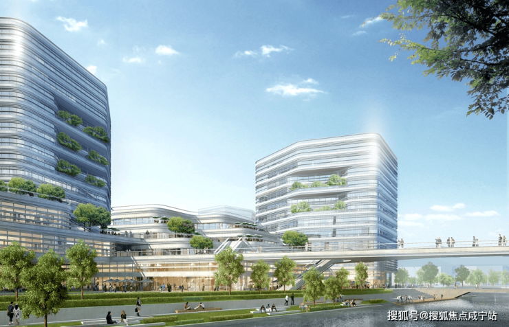 以简洁明净的几何线条,勾勒建筑轮廓,打造轻盈质感;延续赵巷江南水乡“水陆交织”空间肌理,以“一轴、一环、多园”景观格局,七大景观节点,形成丰富的空间院落,打造多层级的空间效果。