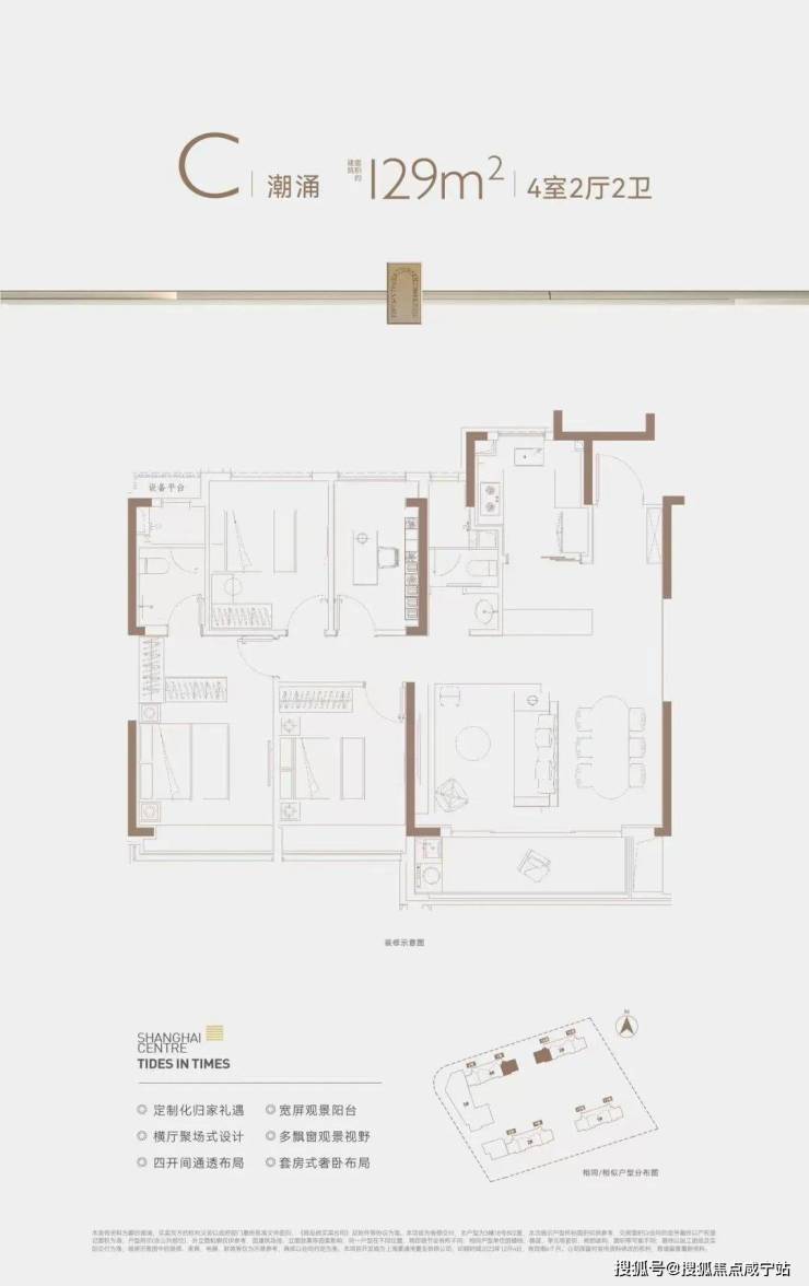 第二,项目本次推出的建面约129㎡4房, 是区域目前在售的4房户型。