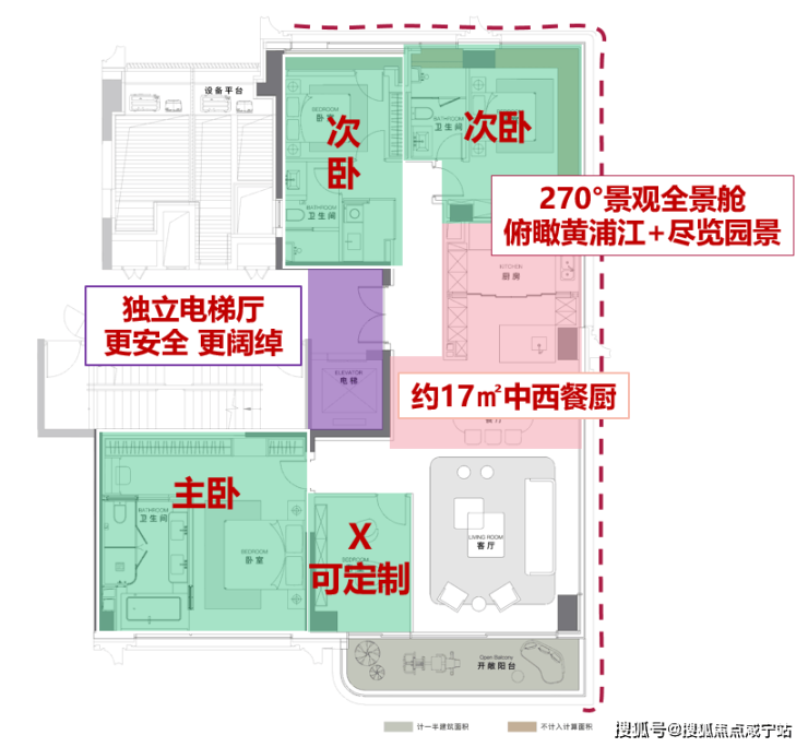 视野:全上海唯一拥有60平米的S湾私人会客厅,仅用5根外置支撑270°超级无界平层结构。