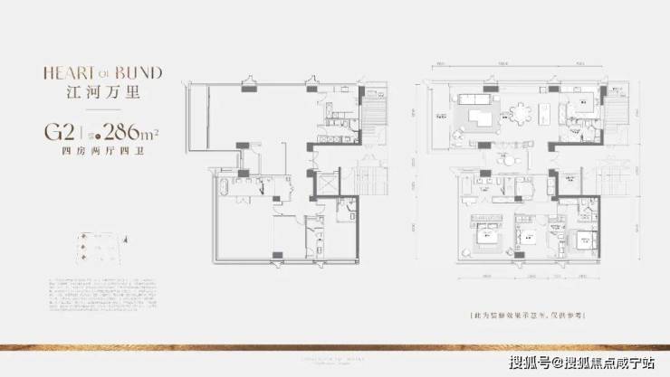 286户型:19-32F,总价约4650-5600万,单价约16.5-19.5万/㎡;