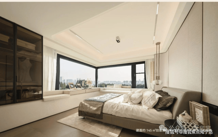 绿城逸庐售楼处电话☎:400-8800-703✔✔主卧套房设计,边套户型更独享270°超大转角飘窗,将广阔视野与充沛采光一并纳入怀中,无论昼夜晴雨,窗前皆是无遮挡的风景画。地面铺设柳叶拼实木复合地板,温润而富弹性,光脚踩踏也倍感舒适。