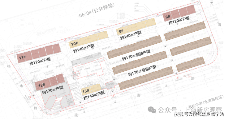 高层楼栋部分首层架空设计,值得注意的是12-1#楼的1-2层为居委会、养老服务等社区配套,未来定价或许会低一点。多层住宅分布在整个社区的东南角,预计均为叠加类产品。
