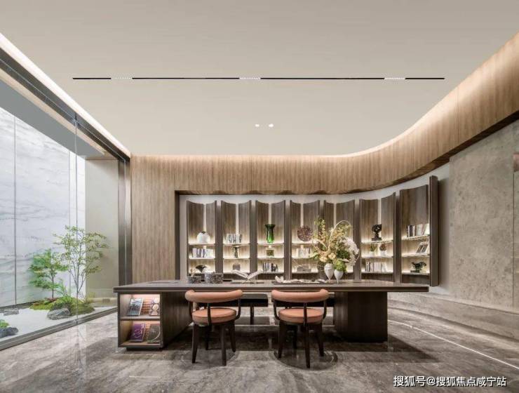 这是一方兼得生活感与烟火气的归家中转站,由真实生活场景构建的归家前庭,让业主可以在归家路上随手取拿快递外卖,并经由游廊步入水院,在揽境客厅坐下来喝杯咖啡,让业主不仅是空间的观赏者,更是参与者与创造者