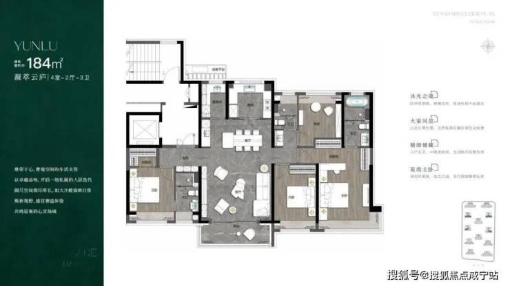 除了最大户型的舒适与尺度感之外,该项目其他几个户型各有特色。