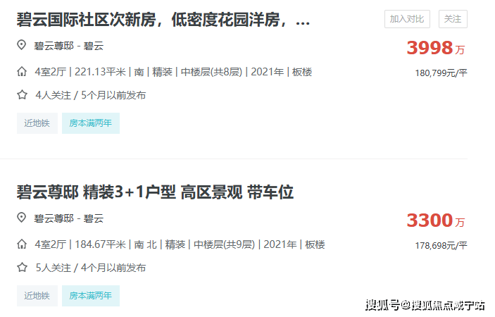同步我又看了下低密洋房碧云尊邸,挂牌单价仍然稳居18万/㎡,200多平的洋房总价要近4千万,国际住区的稀缺低密产品,抗压能力恐怖如斯!