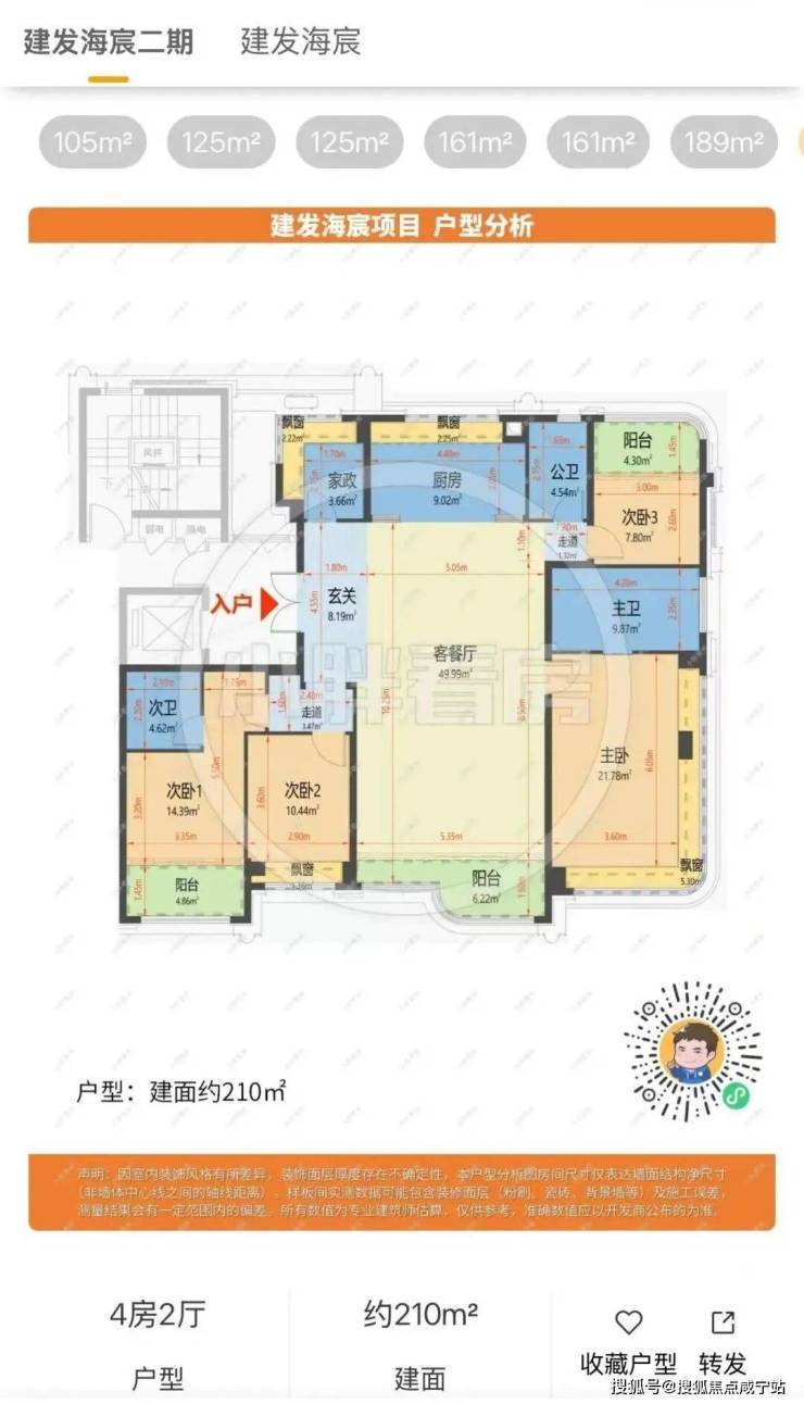 我们重点来看建面约210㎡户型。