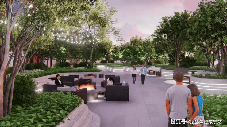 邻趣公园布置了多处休憩草坪、艺术水池、趣味广场、交流庭院,鼓励居民户外活动,促进邻里交流沟通。