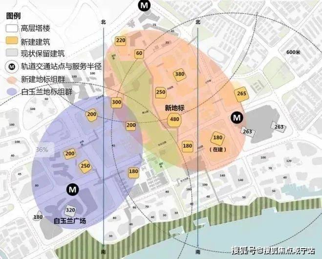 项目南侧的北外滩核心区,是发展的重中之重。1/5的土地上,将承载了北外滩超四成的建筑体量,商务办公占据了主导地位。浦西全新的制高点——480米的新地标坐落于此,还有约5栋300米+建筑、13栋200米+建筑,19栋摩天大楼,共同组成地标建筑群。