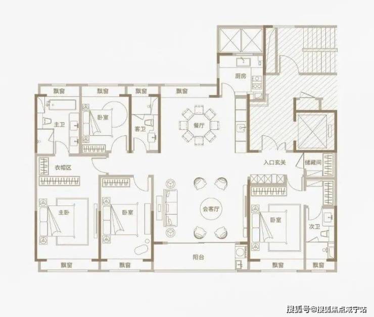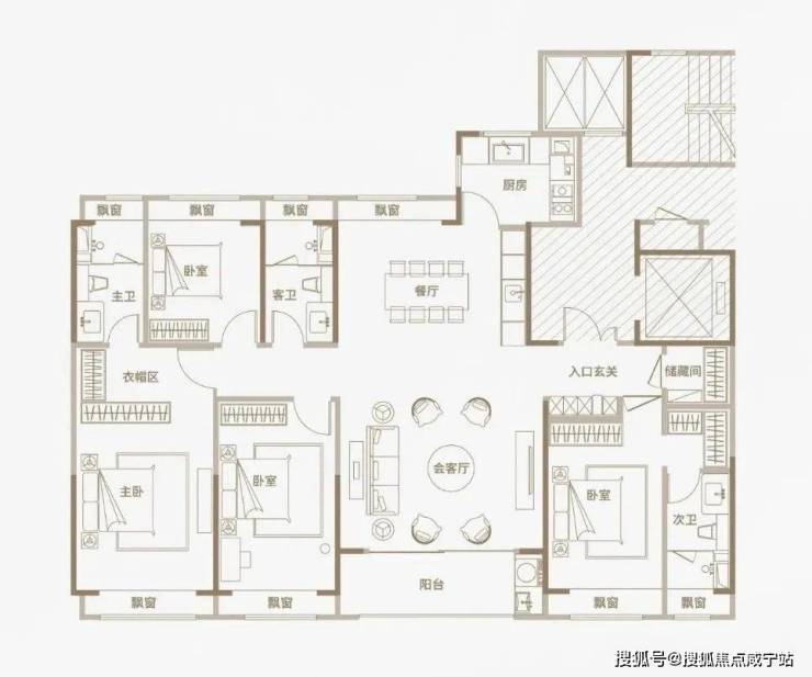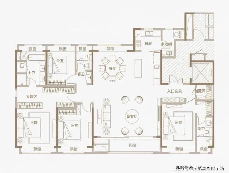 光从户型图来看,三种户型均为四开间朝南设计,同比市面上两百平左右的平层住宅,南向面宽资源更为宽阔;三种户型均打造出了4房2厅3卫的全能格局,主卧+次卧为双套房设计;此外,所有空间皆为全明设计,全屋多达8个飘窗!