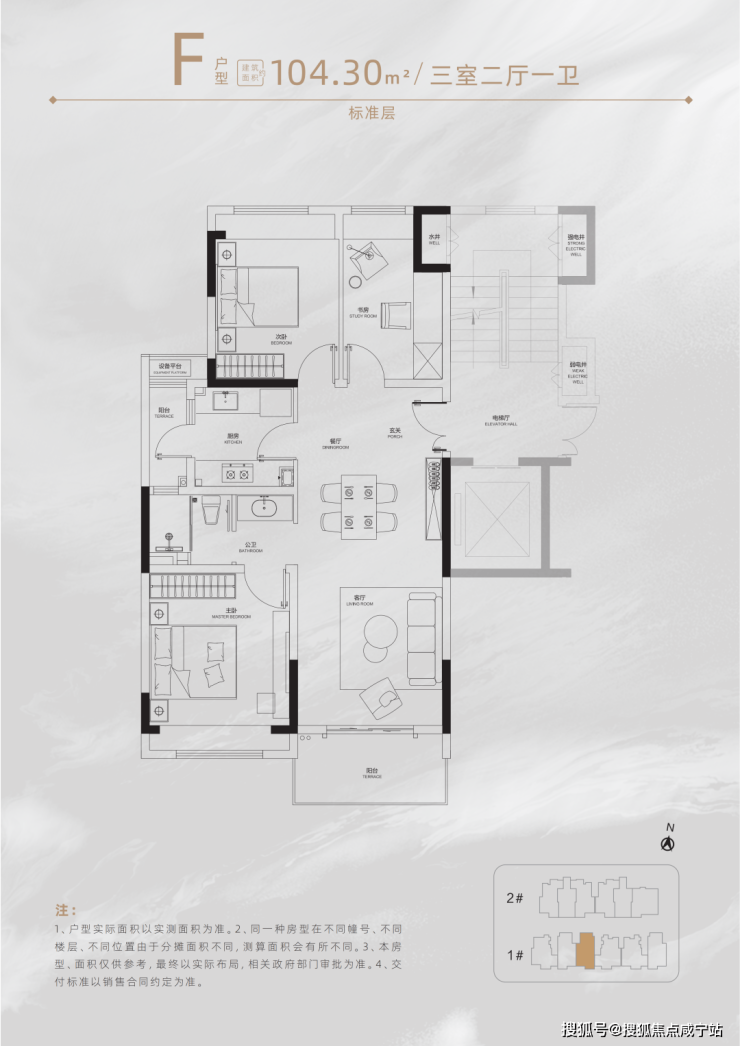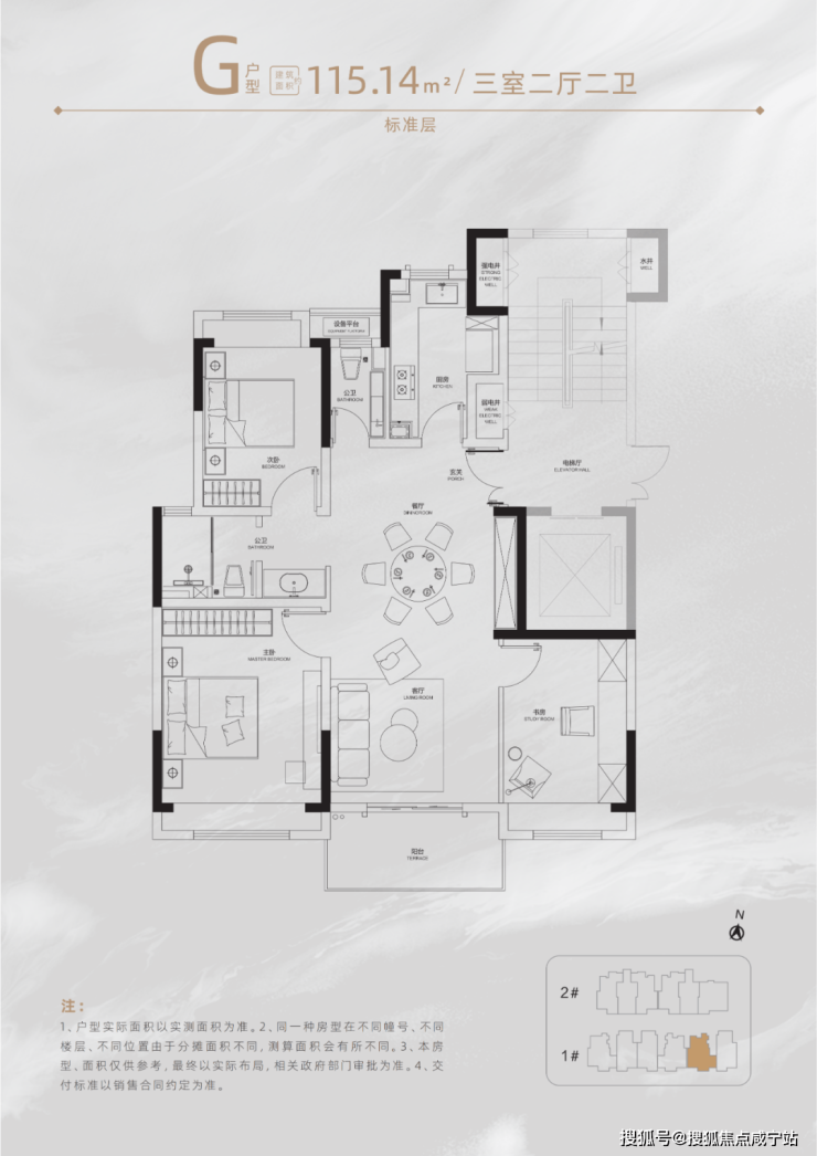 以建面约115㎡计(位于小高层),比常规户型多得约6-9㎡,近似一间次卧的实际面积;同时,更多的实际使用面积相当于降低了单位面积的购房成本,让房价更具性价比。