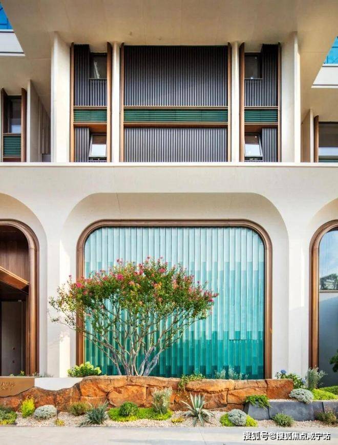 项目立面上,采用了独特的陶板+UHPC+铝板设计。相比老式豪宅的铝板,这种源自传统陶瓷工艺的材料,既能呈现自然材料的温暖肌理,又有远超铝板的耐久性与可定制性,是今天豪宅圈最in的选择。
