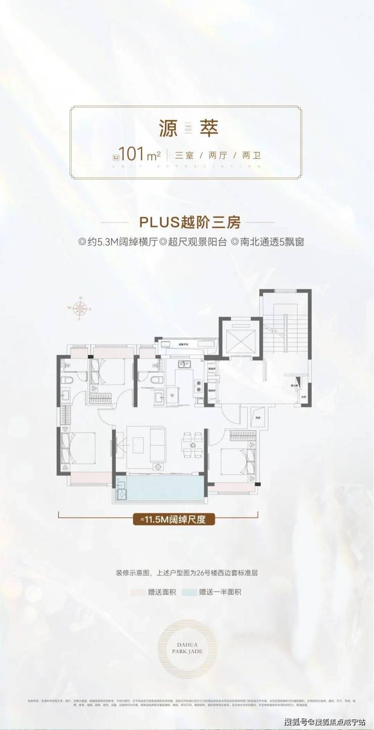 101㎡越阶三房:约5.3M阔尺横厅/约11.5M南向面宽,宽纳聚会欢愉