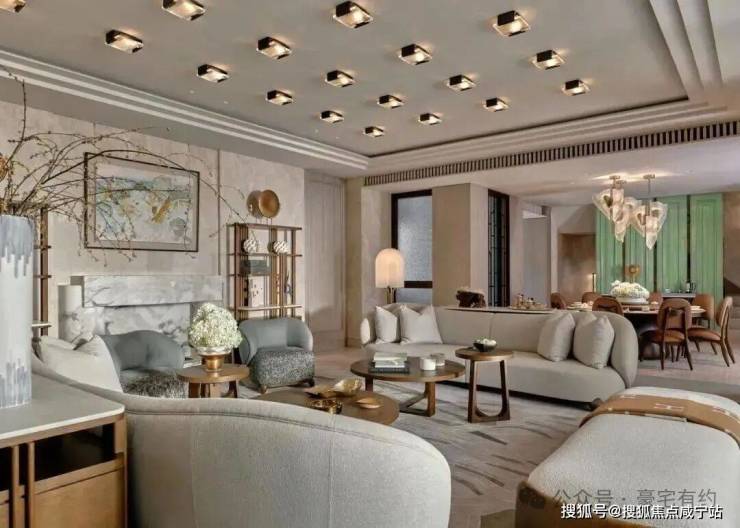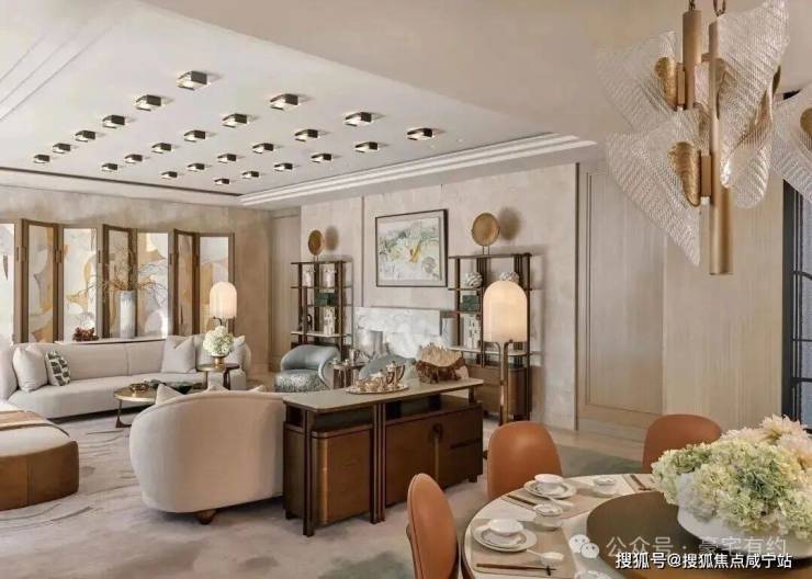 ✅✅华润士林润园售楼处电话:400-8800-703✅✅主厅核心区悬浮式定制柜体,银箔与丝绸在几何切割中构建中式基因,毕加索石材的天然裂变肌理成为天然艺术装置。瀑布吊灯以流体力学演绎东方留白,让光影在岩板表面生长出动态水墨意境。
