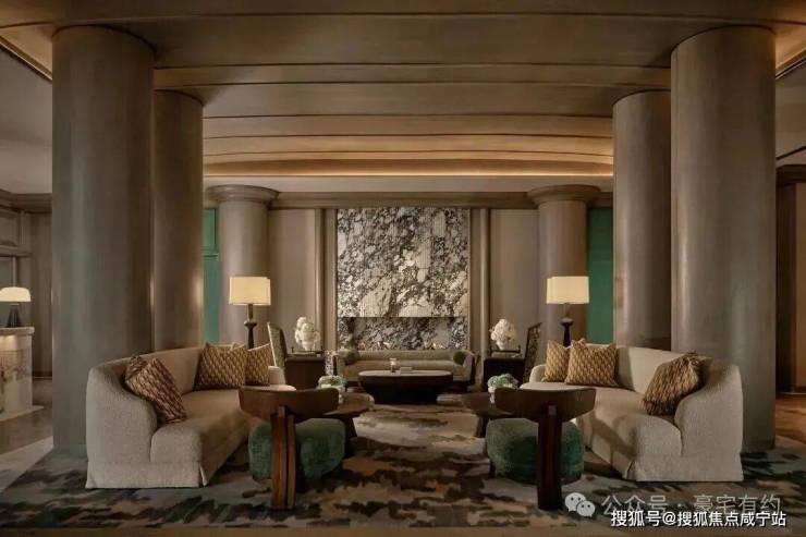 ✅✅华润士林润园售楼处电话:400-8800-703✅✅“真正的国际化是让本土基因自然生长。”设计师说。手绘图样经数字化转译为墙面肌理,灰绿与暗红以几何切割形成视觉通感。