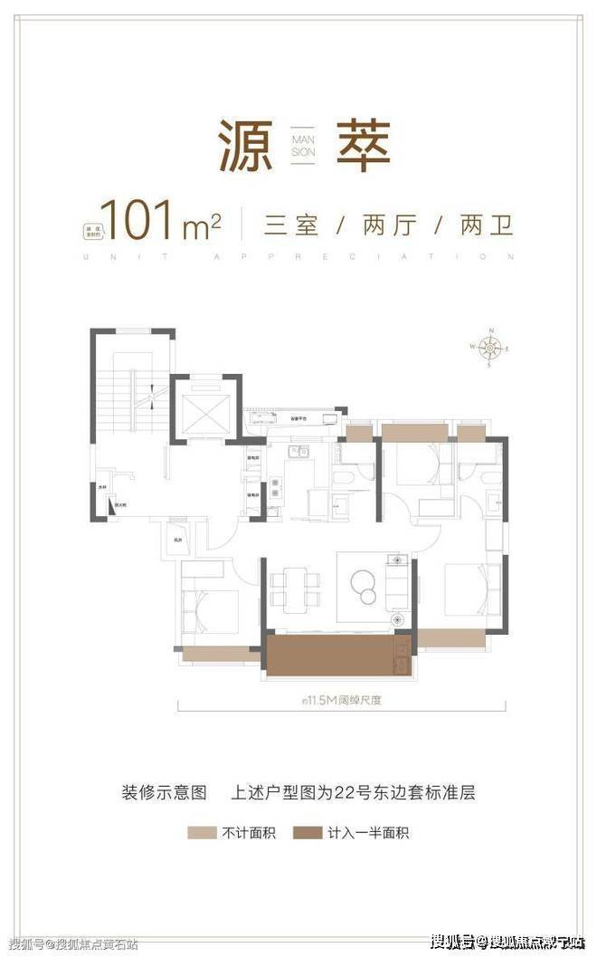 ⋄101㎡PLUS越阶三房:约5.3M阔尺横厅/约11.5M南向面宽,宽纳聚会欢愉;