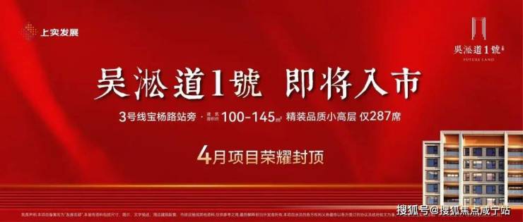 3号线宝杨路旁,上实·吴淞道1號将主推建面约100-145㎡3-4房,仅287席,主力总价600万级,即将入市。