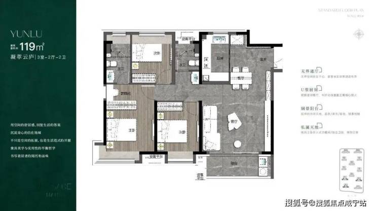 除了最大户型的舒适与尺度感之外,该项目其他几个户型各有特色。