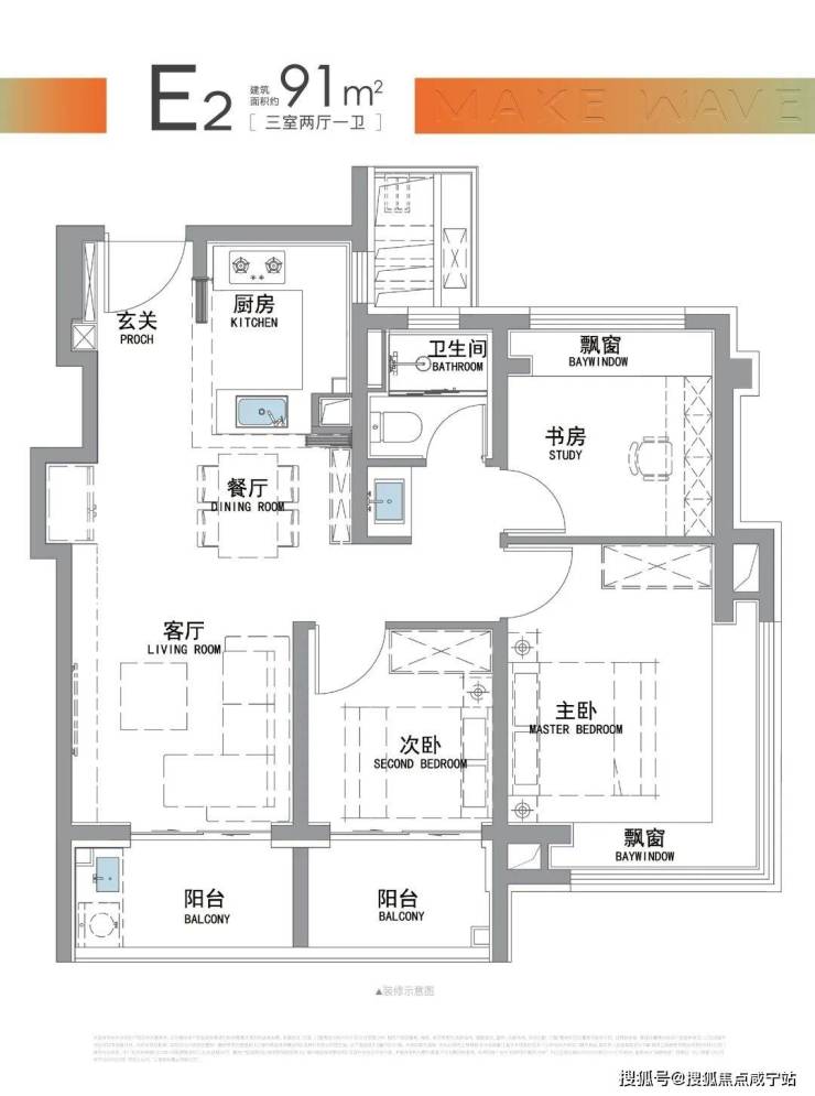 建面约91㎡,实际使用空间面积,可以媲美市面上常规的百平三房,按项目过会单价计算,就是差不多省了50多万!