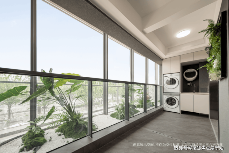 又或者,和创意体验馆一样,南向两个阳台联通,可以享受到家政阳台+生活阳台。(交付时此处为实体墙)