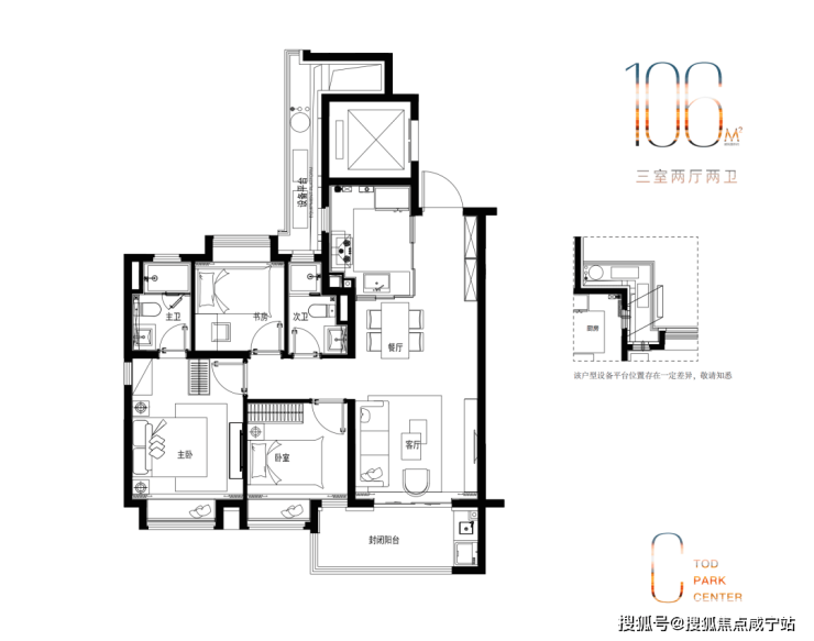 建面约106㎡新品3房:无连廊,高得房率!