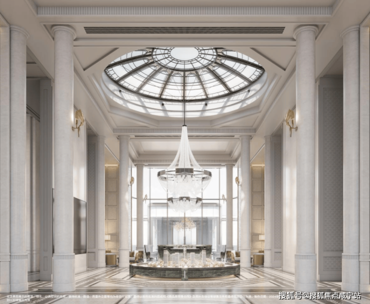 再仔细看细节,顶部香槟金色格栅塔冠以及壁柱采用香槟金和白色色调,将海派与现代之美生动演绎。