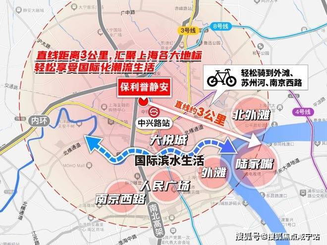 而项目到外滩和平饭店的直线距离正好是约3公里!妥妥的城心烫金地段!