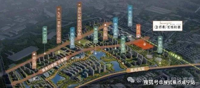 计划引入九年一贯制公办教育、民办学校(国际化特色办学),规划打造10公顷迎虹湖、带主题滨水公园的15公顷绿野谷公园等配套。