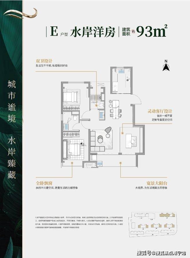 洋房(主力,精装交付):建面56-93㎡,一至三房,得房率超 80%(洋房优势),全明通透、多飘窗、餐客一体;标配东芝中央空调 + 威能地暖,精装标准高,拎包入住