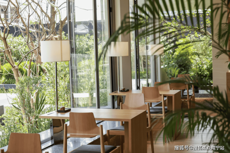 有效的将河岸原生水杉等自然美景融入,被自然包裹的阳台以精致现代的花砖铺设,搭配吧台,卡座,打造出繁入静的城市滨水一角。