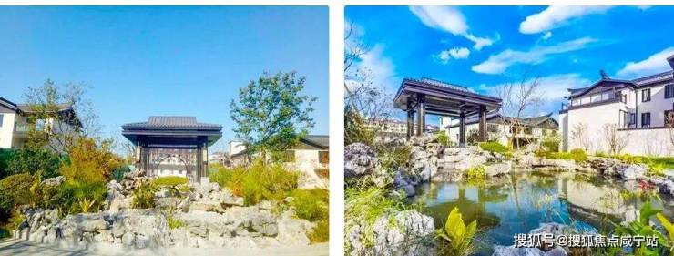 白墙黑瓦的视觉风格,中轴对称的大气格局,高地错落建筑造型,辅以亭台、叠水、乔木等中式景观布局,营造浓厚的中式宅院体验感。