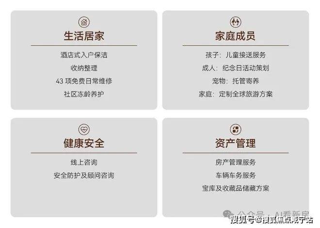 空间设计的目的是将空间交还给人,承载生命的欢愉与丰盛。古北99以前瞻性的视野,对古北的生活方式进行深度迭代升级,汲取世界奢华酒店基因,从时间、空间、私属三个维度出发,依据280余项标准化服务细则,打造自然无痕的服务内容;并充分考虑当代高净值业主需求,提供日常居家服务、健康安全、资产托管等增值服务,如入户保洁、儿童校车点接送、宠物托管、工程43项免费日常维修等,妥帖照顾每个生活细节。