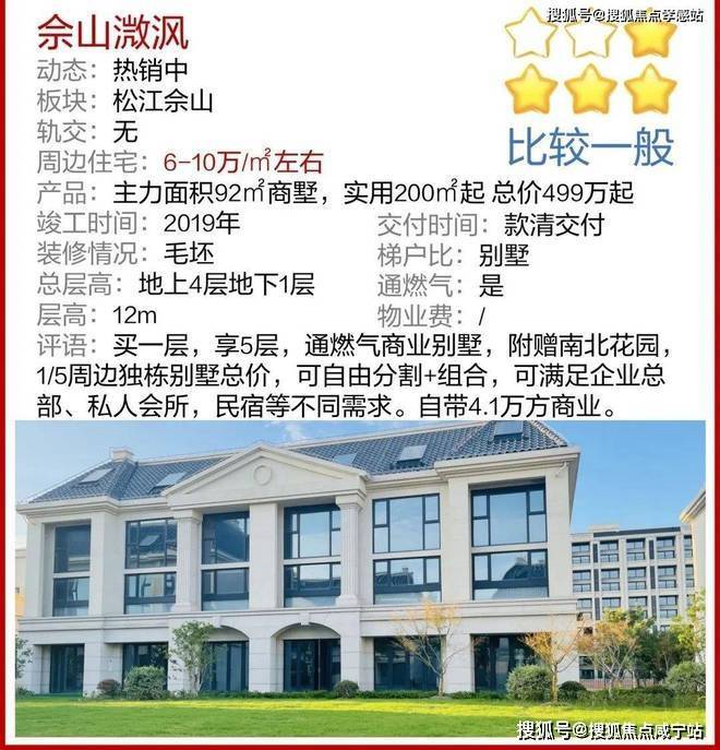 佘山溦沨官方售楼处:400-8800-703✨✨。项目主打商业联排别墅,主力户型为建面约92㎡的3室3厅3卫,总层高约12米(不含地下室),实际使用面积远大于产证面积,可自由分割、灵活组合,满足不同需求。项目还规划有约4.1万㎡的商业配套,拟引进各类潮流业态,满足业主的高端消费需求。