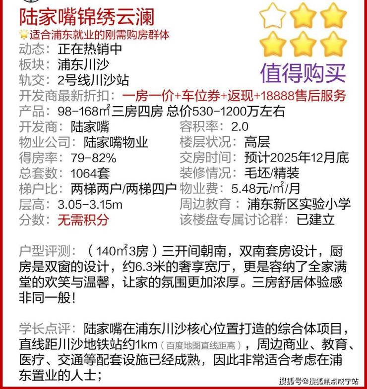 🛍️商业配套:紧邻即将开业的川沙九六广场,直线距离1公里范围内汇聚了百联川沙购物中心、绿地东海岸国际广场等大型商业综合体