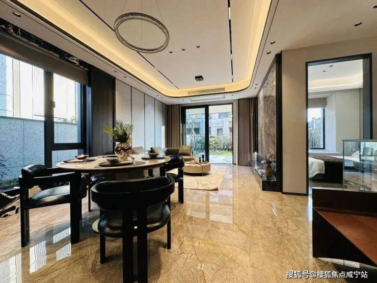 项目打造新中式立面风格,别墅1-3层、洋房1-2层采用来自巴西的维多利亚白天然石材干挂,营造高级、大气的建筑气质。
