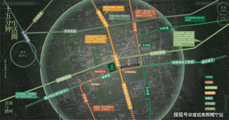 约400m步行即达15号线虹梅南路站,约300m直上虹梅高架路,15号线(已通车)、19号线(在建中)、机场联络线三轨交汇,中国铁建万科·朗拾花语打造直线距离中环约2.5km的600-750万级的房子,这对上海新锐精致青年的诱惑力实在太大了。