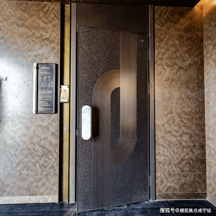 样板间门口第一眼,就看到铸铝门搭配隐藏耶鲁门锁,极具厚重感。