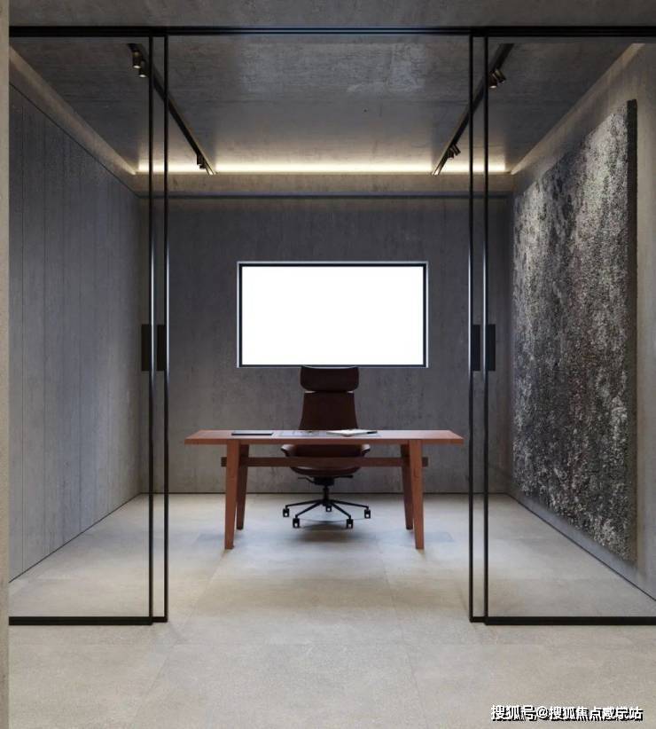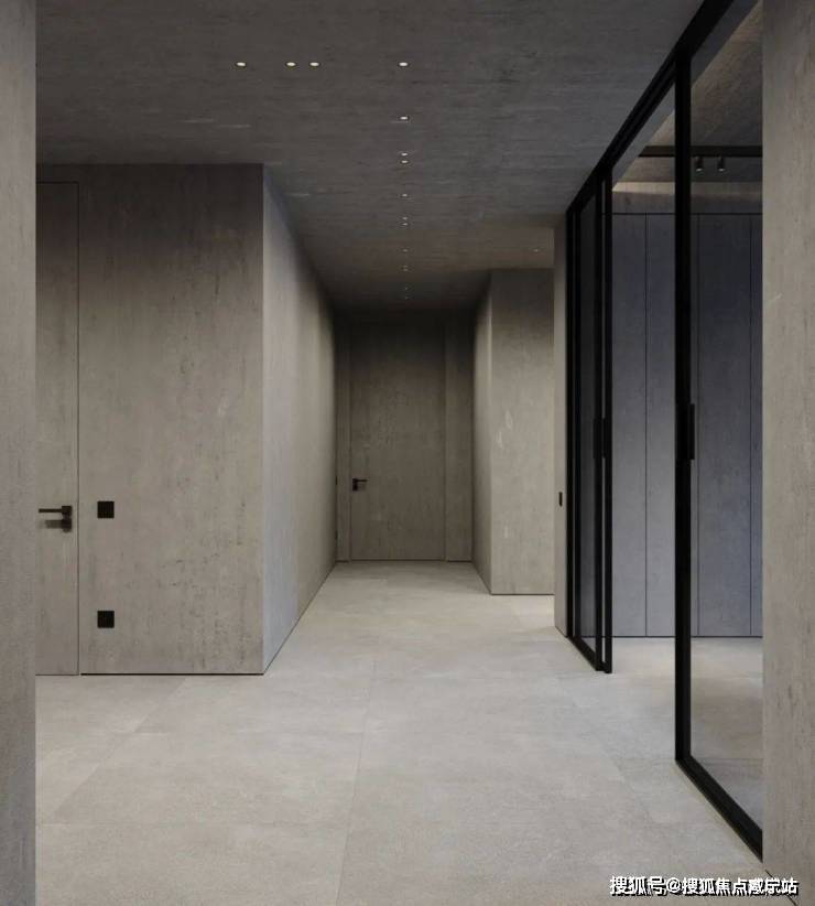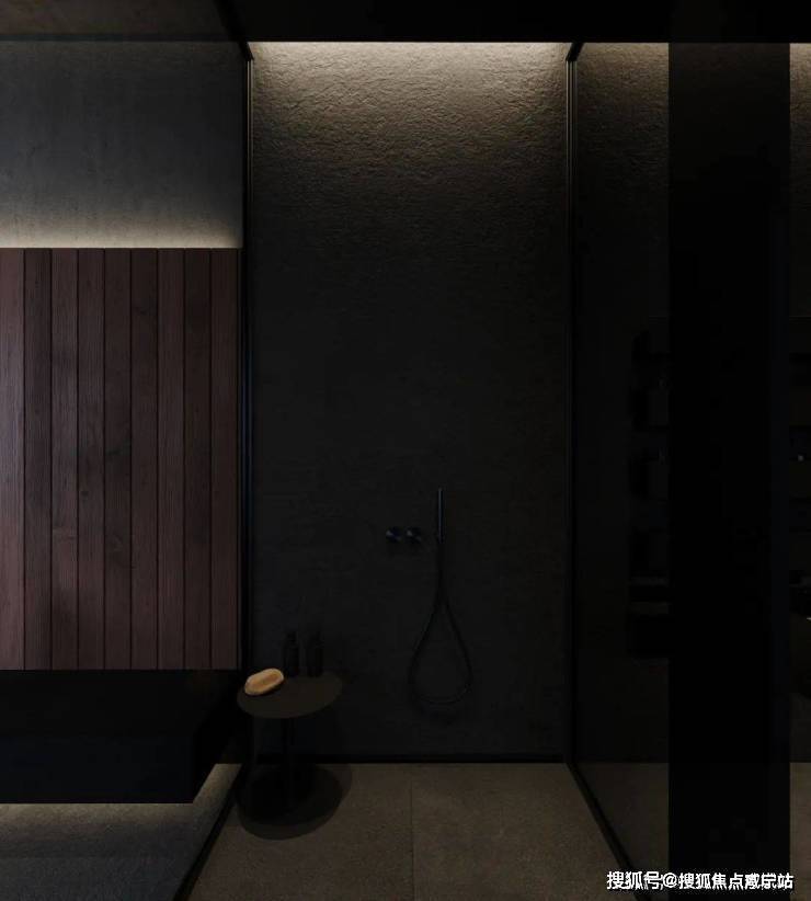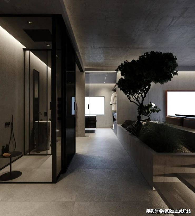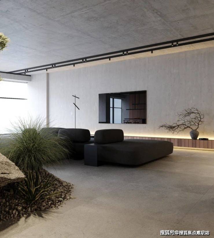 The bedroom still continues the minimalist design style. The stone background wall is used to echo the living room, and the steps are used to distinguish the space. The light gray ground creates a clean and pure space atmosphere.