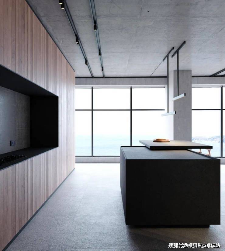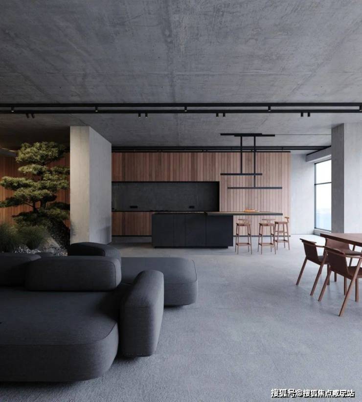 The kitchen and living room adopt an open layout, making good use of the small space. The cement wall embodies a strong industrial style and is unique.