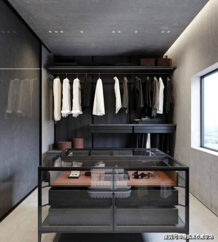 衣帽间与卧室相连,也是延续了极简的设计风格,呈现了与众不同的高级感。卧室中没有过多的装饰,秉承了现代主义极简风格。