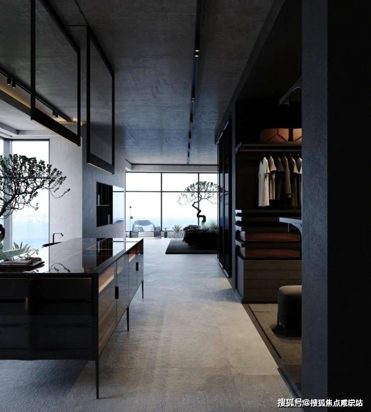 The cloakroom is connected to the bedroom, which also continues the minimalist design style, presenting a unique sense of luxury. There is no too much decoration in the bedroom, which inherits the minimalist style of modernism.