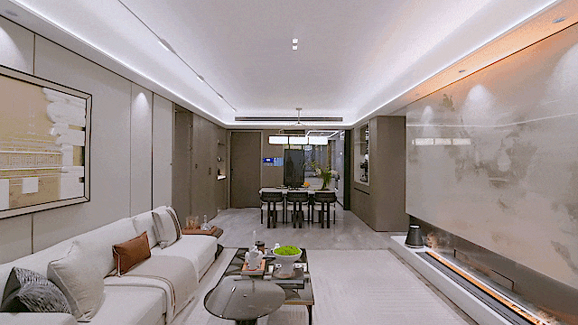 比如,客厅的电视背景墙、地面、主卫、飘窗等区域选材都升级为奢石。另外,客厅沙发背景墙、卧室背景墙升级为精美皮革,木饰面升级为温润影木,室内的豪宅气质更胜往昔!