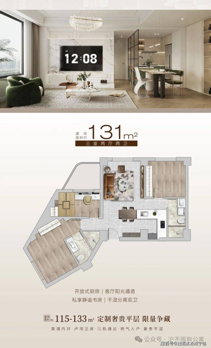 最后4席!黄浦卢湾板块平层公寓,【黄浦·滨湾 】通燃气,面积115㎡-133㎡