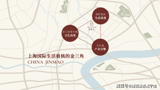金茂璞元落子上海虹口区瑞虹新城核心区,精准占位外滩-北外滩-陆家嘴黄金三角辐射圈,距黄浦江仅约八佰米,是瑞虹新城30年城市更新的收官巅峰之作,兼具成熟配套与发展红利双重加持。