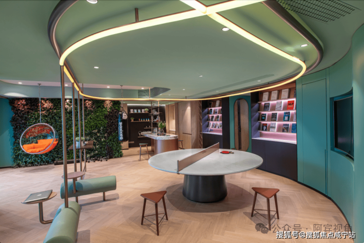 社交主场:空中花园串联共享会议室/咖啡吧/健身区2,艺术长廊成为精英圈层天然社交场;