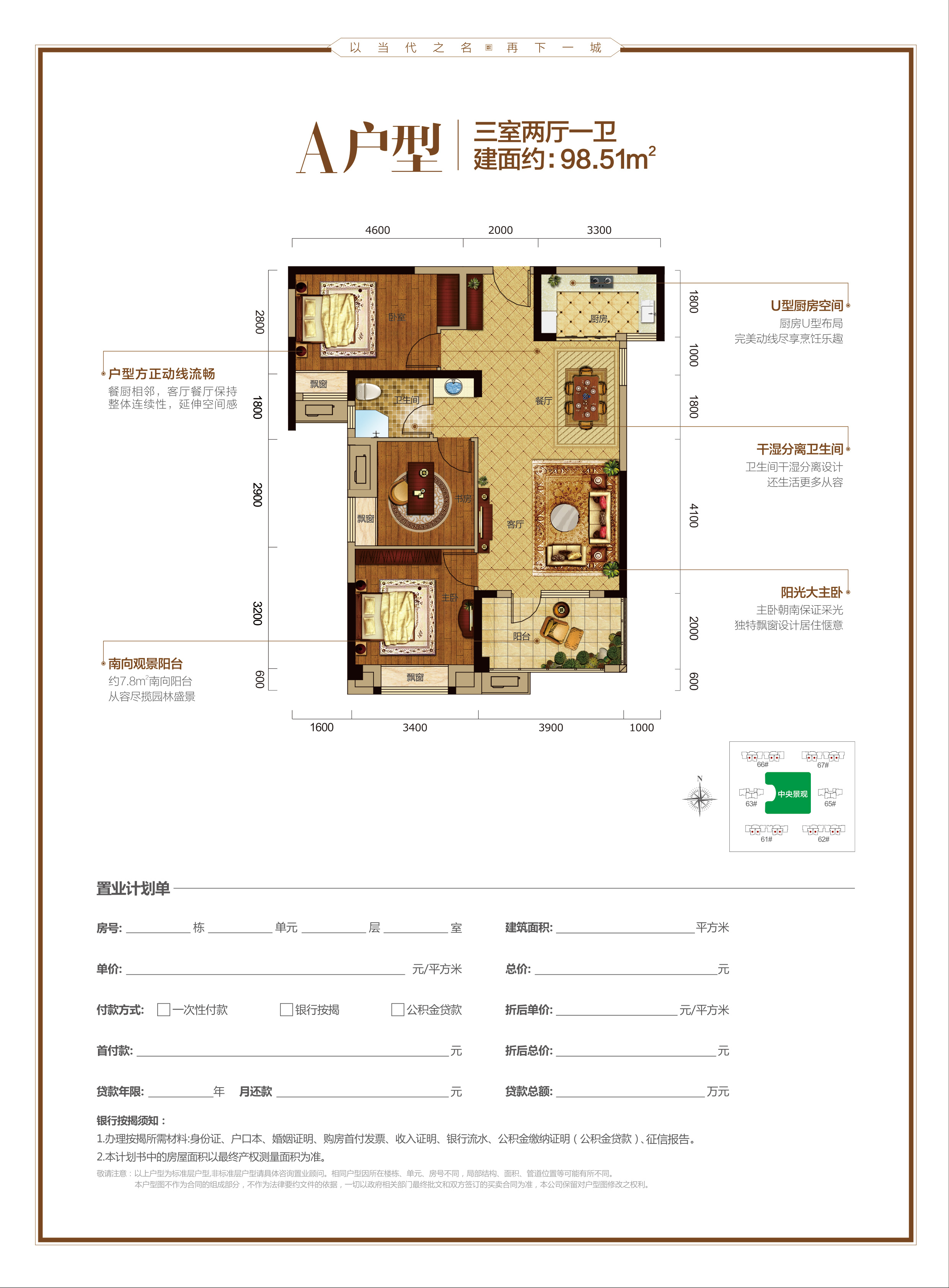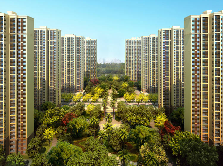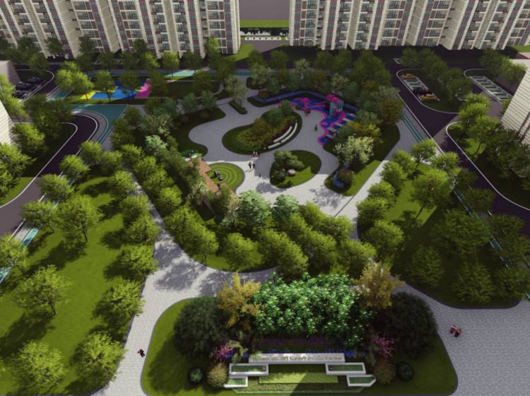 【满庭春MOMΛ•当代城】项目,地块自南向北,分2期开发,1期由6栋17—33F高层住宅,采用围合式规划形态,小区中心景观约1.6万方的中心花园,设计上强化中心景观的开放活动空间和绿化景观体系,使每个单元都能便捷的进入到景观中心,真正力求做到户户有景。景观结构设计上采用“一带(风情商业带)、一轴(地块南北通轴)、二环(商业内环、外环)、多节点(园区内部节点)”设计理念,为少儿、青年、中老年,营造“五重”归家、入户、居住、休憩景观体验。