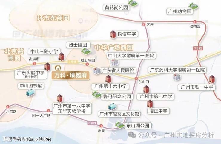 项目一路之隔为广东实验中学初中部(省级重点),对口西侧紧邻中山三路小学,周边还有第十六中、第十三中学等名校,根据学区划分政策,业主子女可对口派位至省实、执信、铁一等名校。