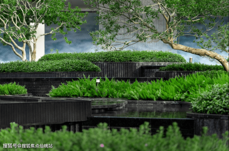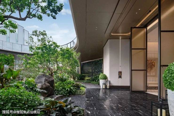 园林景观方面,保利・珠江天悦以安缦酒店同款度假风为设计基调,打造三级叠水立体园林,打破传统平面园林的单调感。社区内保留五棵古榕树,融入老广的人文情怀,寓意繁华昌盛、镇宅安宁,交付后将完整纳入社区园林。园林以立体水景为核心,从入口叠水瀑布到中央镜面水池,再到步道溪流,形成 “听水、观水、亲水” 的沉浸式水景体验;高低错落的绿植搭配乌桕、铁冬青等名贵树种,营造层次丰富的视觉效果。园林中央打造帆船造型的悬浮茶室,作为社区社交核心据点,茶室底座采用巴西进口雪山银狐奢石,水池底部铺就安哥拉黑奢石,步道采用库班灰奢石拼接,这些奢石兼具美观性与实用性,造价高昂,彰显顶奢人居的品质感。所有园林景观均为永久交付标准,业主所见即所得,无需担心交付货不对板,充分体现保利的兑现力与诚意。