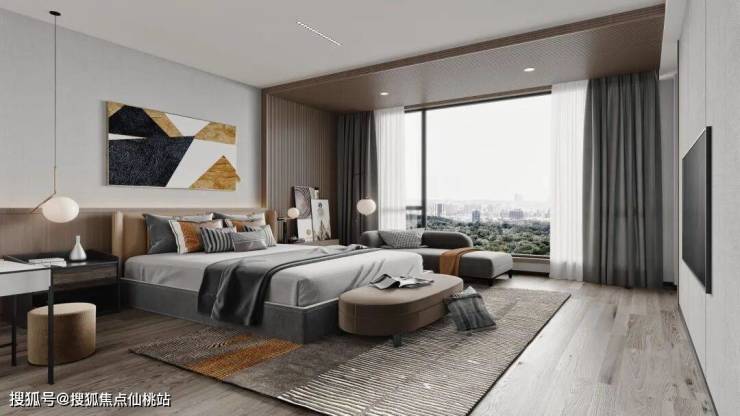 宽境主卧套房尺度奢阔,宛若空中行宫,将主人的身份与品味展现得淋漓尽致。