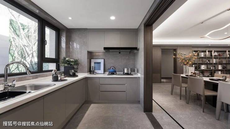 户内空间布局极具巧思,厨房与生活阳台巧妙结合,可开可合,能根据家庭不同阶段的需求,在开放式美食空间与独立中式厨房之间自由切换,赋予生活更多弹性。
