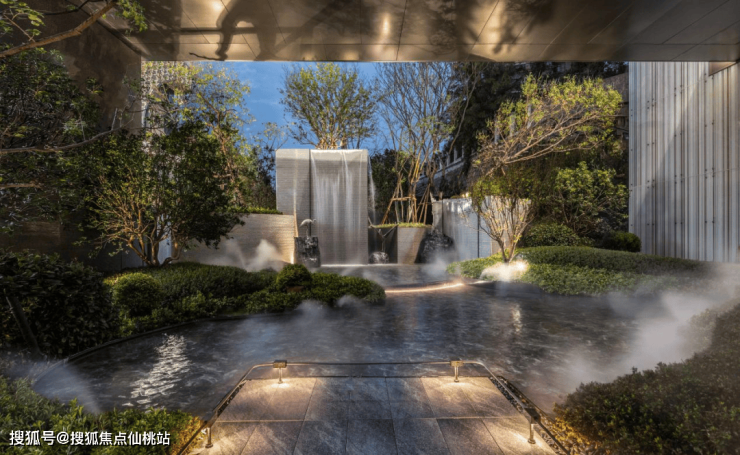 园区打造上,邀豪宅山水大师山水比德操刀,打造约1.15万M²景观。采用“一轴三区九景”理念,打造台地式折叠园林,以“折叠山水”演绎当代城中山水自然庭园。
